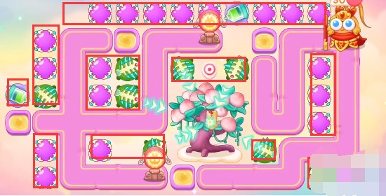 1、本关能够使用的炮塔是:毒针、闪电炮、魔法球、鱼刺、雷达,这一关我们选择魔法球和鱼刺输出。