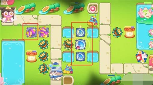 5、第五波左侧加一导弹塔,升一级,清掉一道具,把中间多重箭升满级,中间宝箱清掉变为蓝色炮塔。