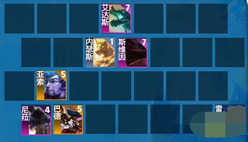 3、阵容站位:塞拉斯和斯卡纳顶在前排,剩余英雄沉底放,要注意不要让韦鲁斯被刺客切了。