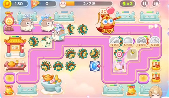 5、第五波开始我们的压力就小很多了只需要一直锁定天王进行输出即可,多余的钱继续用来放置多重箭增强范围伤害能力。