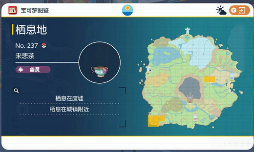 来悲茶宝可梦位置在下图中