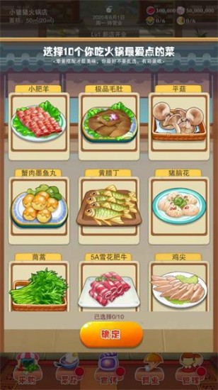辣味人生是一款非常新颖的模拟经营游戏,在辣味人生游戏里面,包含了很多的任务需要玩家完成,游戏里面包含了一个选菜的活动,很多玩家不清楚辣味人生开局十道菜怎么选,小编为玩家带来了辣味人生开局十道菜选择推荐,这里面将会以火锅为背景,十二个菜里面选出来十个,选对的话是有彩蛋赠送的,其中包含了金针菇、毛肚、藕片、鹅肠等。