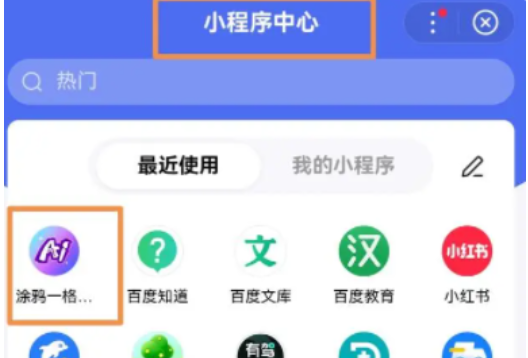 打开“百度”,点击“我的”,找到“我的小程序”就能看到“涂鸦一格”AI这个小程序。如果没有使用过“涂鸦一格”,这个菜单就会被折叠起来。如果常用,它就会显示在菜单的前面。
