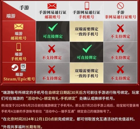 请注意:使用网易邮箱账号登录的手游账号无法绑定Steam/Epic平台的端游账号。