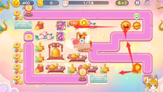 4、后期伞天王玩家可以按照行动轨迹放炮塔,这个中间还要注意会飞的兔子,记得要锁头打一下,不要漏掉了。