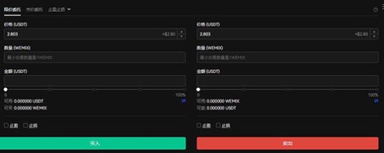 6.点击WEMIX右侧的交易按钮,进入购买页面