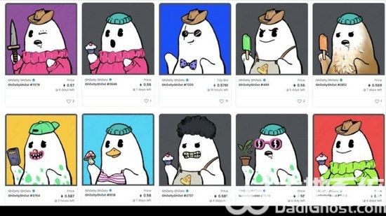 GhostlyGhosts 在设计上算是非常有巧思,背景颜色为每个NFT 出生地的颜色,由于丑幽灵Gh0stly Gh0sts 在七条链同时做发行,因此灰色代表以太坊Ethereum、黄色代表BNB、紫色代表Polygon,红色代表Avalanche、宝蓝色代表Fantom,天空蓝代表Arbitrum、粉色代表Optimism。另外,外边框颜色代表目前所在的链,例如下图是在以太坊的Opensea 上做查看,所以边框都会是灰色的,但如果你在BNB 卖场上查看,则边框将会是黄色。