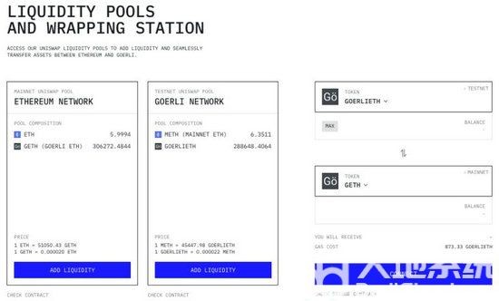 用户只要在以太坊上买入gETH,即可在Goerli 网路上获得相对应的ETH(测试网版本);反之,用户如果在Goerli 测试网将ETH 兑换为mETH,就能在以太坊上获得相对应的ETH(主网版本)。所有上述操作皆一键完成。