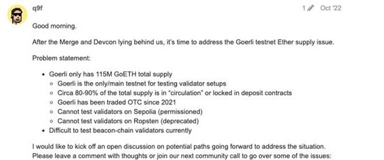此外,另据Ethereum Magicians 论坛数据,Goerli 上只有1.15 亿的GETH 总供应量,其中的80%-90% 处于流通或锁定在存款合约中;由于GETH 明显不足,因此事实上早在2021 年以来就一直存在场外交易,而如今LayerZero 上线「测试网跨链桥」让开发者更容易轻松购买到他们所需的测试代币。