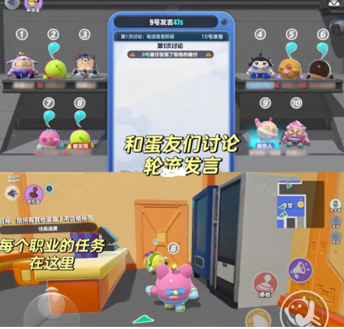 一局10个蛋,身份不重复,有紧急任务,拉铃,找鸡腿,获胜方式和鹅鸭杀一样