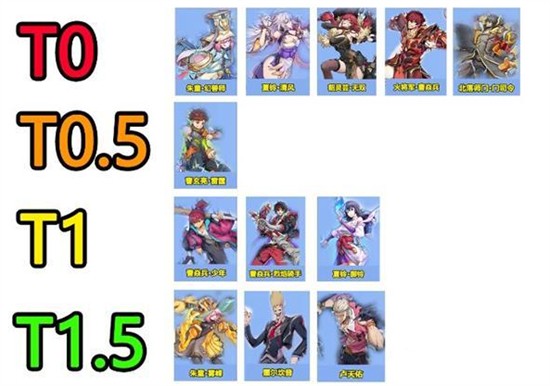 1.T0角色强度:朱童幻兽师、夏玲清风、貂灵芸无双、霍将军曹焱兵、北落师门门司令