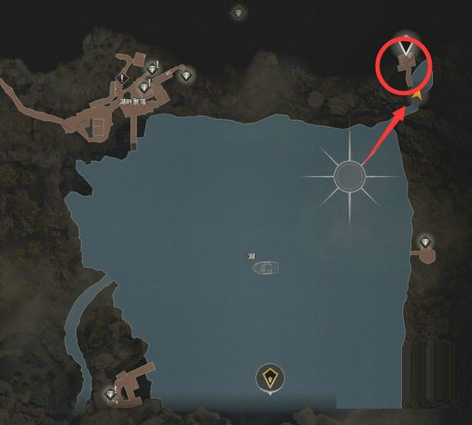 1. 登陆湖东北的码头,来到小洞窟祭坛。按钮石台谜题的提示也是在附近。