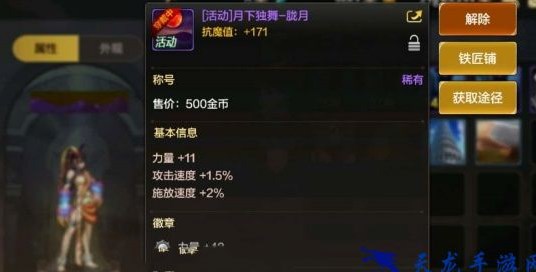 1、月下独舞称号是开服毕业的最强称号,可以给角色提供可观的属性加成以及魔抗值加成。
