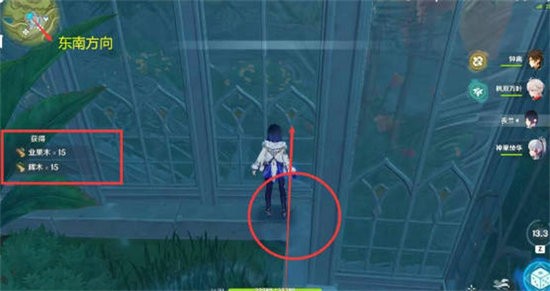 1、如图所示,辉木还有业果木这两个的砍伐地点,这个位置在禅那园的温室中,你们过去之后就可以看到的;