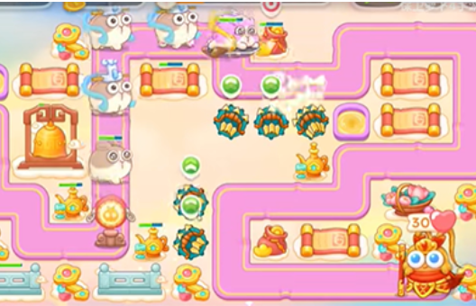 4、后期的话,道具基本清理完了之后,要顺着七仙女的方向放一个炮塔,玩家可以参考。