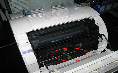 根据说明找到打印机传感器,看看里面是不是有灰尘和脏东西,如果有的话,就将其进行清除吧
