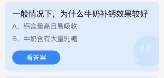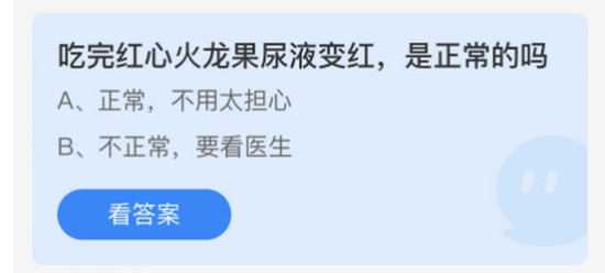 2022年3月17日蚂蚁庄园的庄园小课堂给用户们准备了两道题目,分别是“吃完红心火龙果尿液变红是正常的吗”、“一般情况下为什么牛奶补钙效果较好”,如果用户参与回答即可为小鸡赢得饲料,今日题目正确答案是“正常不用太担心”和“钙含量高且易吸收”。