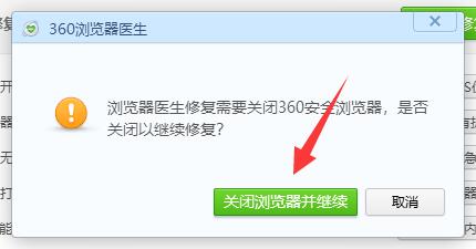 4、再点击“关闭浏览器并继续”并等待修复完成就可以了