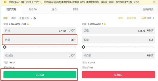 8、填写买入ELF数量,点击【买入ELF】完成买入操作