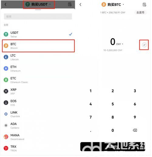 第二步:将购买币种切换为BTC,输入需要购买的金额/数额。点击如图所示的按钮即可完成“按金额购买”/“按币种数量购买”的切换。
