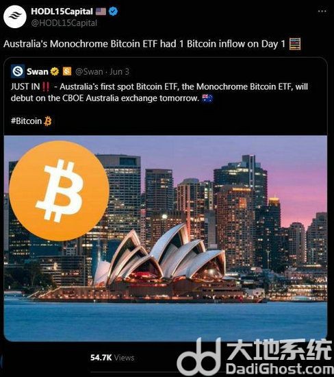 澳洲比特币现货ETF上市首日惨淡!IBTC仅净流入1枚BTC