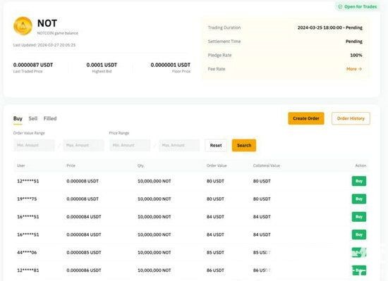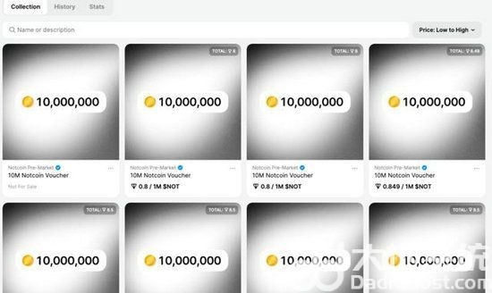 3月初,Notcoin推出了一项功能,允许精英玩家将大量游戏内货币转换为NFT代金券,这些代金券可以在其代币正式发行之前进行交易。玩家可以选择用1000万或1亿游戏币换取优惠券NFT。当前该NFT已上线TON 生态 NFT 交易平台 Getgems进行提前交易和定价,当代币正式在链上发行后,NFT可兑换为代币。