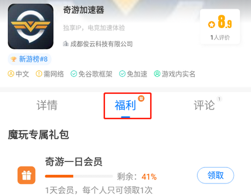 奇游加速器是一款强大的加速工具,对于游戏爱好者来说非常好用,可以为你提供更流畅、稳定的游戏体验。这里为玩家准备了奇游加速器免费福利,大家只要领取兑换码去进行兑换即可。那么奇游加速器免费福利兑换码在哪领呢?大家先下载魔玩助手app,然后在里面搜索奇游加速器,之后点击福利领取就能获得免费福利了。