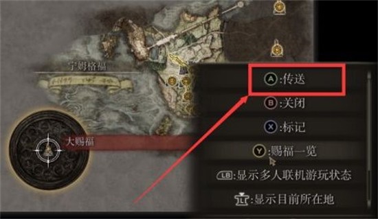 打开大地图,直接在左下角可以看到一个大赐福的地点,其实这个大赐福就是圆桌厅堂。