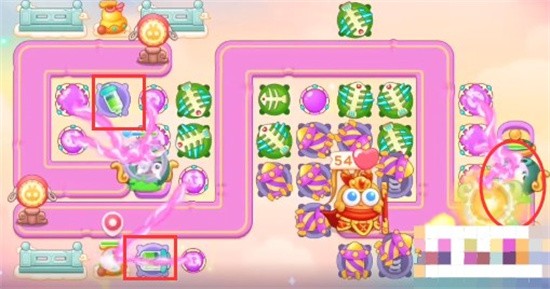 1、这一关我们可以选择的炮塔为毒针、魔法球、闪电炮、烟花、鱼刺,这一关我们使用魔法球、鱼刺和烟花。