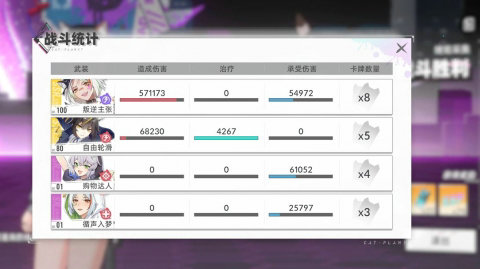 5、这里的阵容是100级叛逆+80级轮滑+1级购物+1级循声,如下图(输出基本都是叛逆打的,轮滑用于没有叛逆牌的时候补输出的)