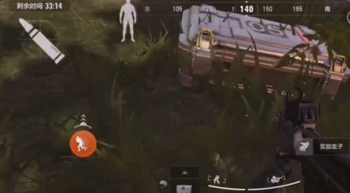 3、第三个彩蛋点在第二个彩蛋点140方向走一点就能到达了,这里有一个奖励盒子,能随机获得护甲、武器、背包以及身份牌、合成材料等等。
