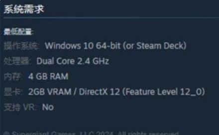 哈迪斯2作为一款神话级类 rogue 迷宫探索游戏对硬件的要求配置并不会太高,但玩家如果想要流畅的游玩哈迪斯2的话,还是需要满足官方要求的最低硬件配置。