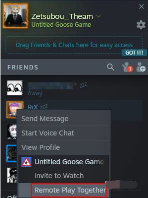 4.游戏里面按Shift tab,右键选择朋友Pemote Play Together。