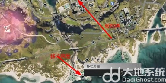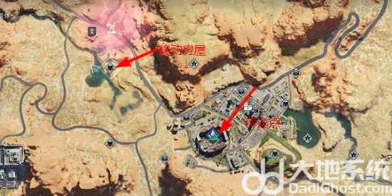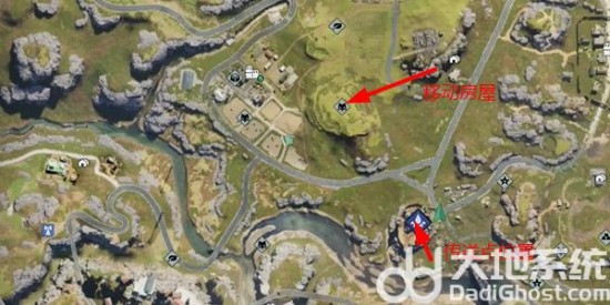 1、移动房屋的刷新位置是不一样的,第一个位置就是在代斯维尔,上面的坡这个上面。
