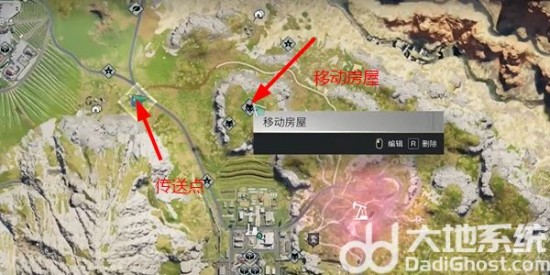 1、玩家可以传送垩峰山的这个位置,然后往山上跑就可以看到这个移动房屋了。