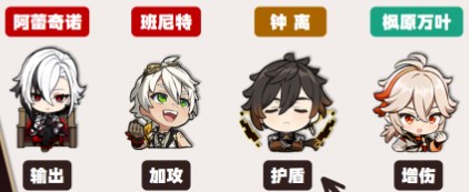 ③ 追求更高伤害、对自身操作自信的玩家,可以直接考虑“阿蕾奇诺+夏沃蕾+班尼特+菲谢尔”。