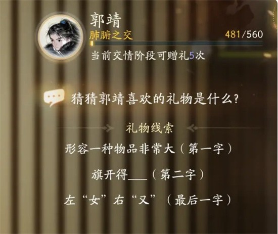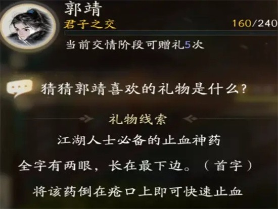 射雕手游郭靖喜欢的礼物是什么 射雕手游郭靖喜欢的礼物一览