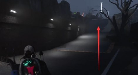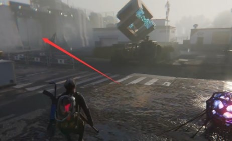 4、接着从这里跳下去,向右飞,可以看到下图所示的一个地标,接着往箭头的方向走。