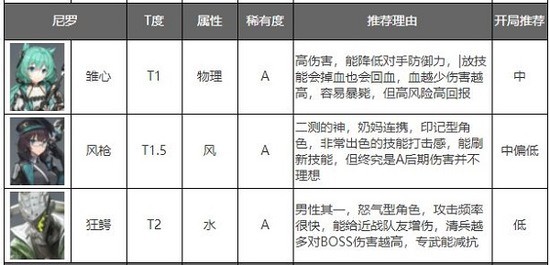 3、尼罗:T1雏心、T1.5风枪、T2狂鳄