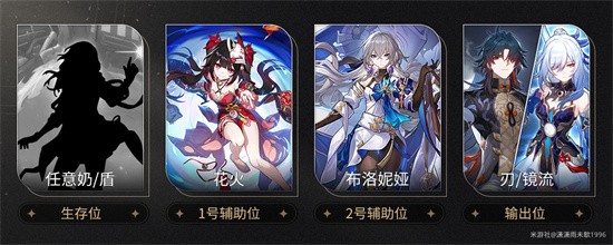 3、生存位+花火+非布洛妮娅辅助位+非青雀及上述外直伤输出位