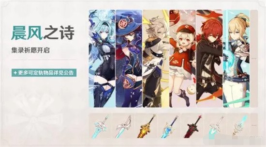 这次混池的标题叫“晨风”,从名字就可以看出这是风之国蒙德主题的混池,里面出现的角色也全部都是蒙德角色,因此不难推测,后续有可能会推出璃月主题以及稻妻主题的混池。