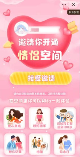 6、点击【接受邀请】,选择性别即可开通属于你们两个人的情侣空间