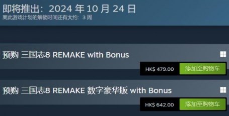 三国志8重制版多少钱?三国志8重制版作为一款经典经营模拟游戏,深受许多三国玩家的喜爱,在本次的重制版本上线,将会为玩家带来更好的体验,本次三国志8重制版将会在10月24日正式上线,只要在这之前进行预购购买都可以获得丰富的预购奖励,本次小编为大家带来的就是游戏的预购价格及其预购奖励的介绍,有想要购买重置版的小伙伴们快来看看吧。