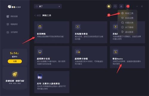 3、进行网络重置或者hosts修复,可能是host以及代理设置影响。