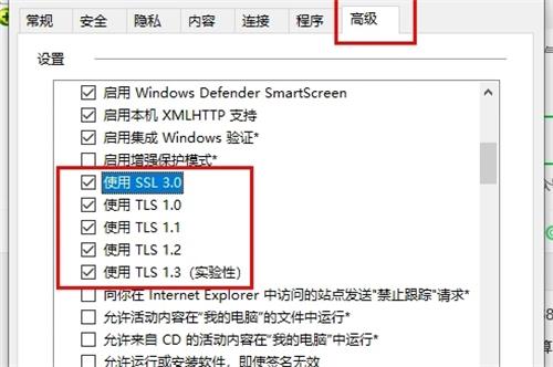 6、打开IE浏览器,右键任务栏选择搜索显示,然后搜索IE浏览器打开,点击浏览器右上角设置,选择高级,设置里面的ssl3.0到TLS1.3都打上对勾,重启电脑(黑屏用这个方法解决)。