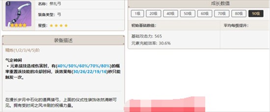 这把武器玩家获取比较简单,并且在常驻当中可以抽到,是比较泛用的一把辅助弓箭,武器词条有充能比较的契合,而特效可以额外产出元素微粒可以给队友加充能也是不错的选择。