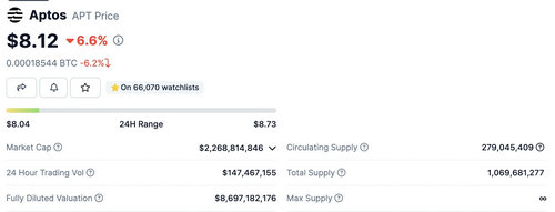 而从解锁归属来看,本次解锁的代币中,价值约 1 亿美元的 1188 万枚 APT 将归属于核心贡献者。价值约 6900 万美元的 842 万枚 APT 将归属于投资者。价值 2600 万美元的 321 万枚代币归属社区。价值约 1100 万美元的 133 万枚代币将归属基金会。
