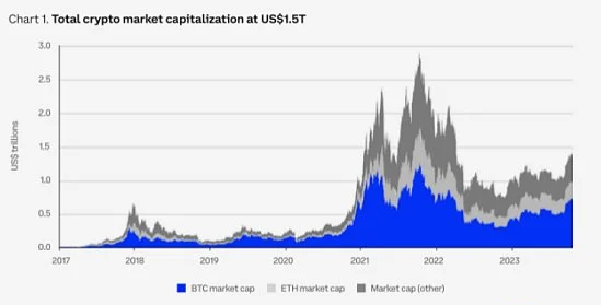 加密货币总市值在2023年经历了大幅复苏,实现了真正的市值翻番。这被视为一个明确的信号,表明市场正在从漫长的“加密寒冬”中走出。