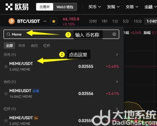 8、在搜索框输入Meme币,选择Meme币/USDT交易对,可以看到Meme币实时行情