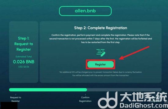 然后点击【Register】,小狐狸弹窗跳出后再次点击确认交易。